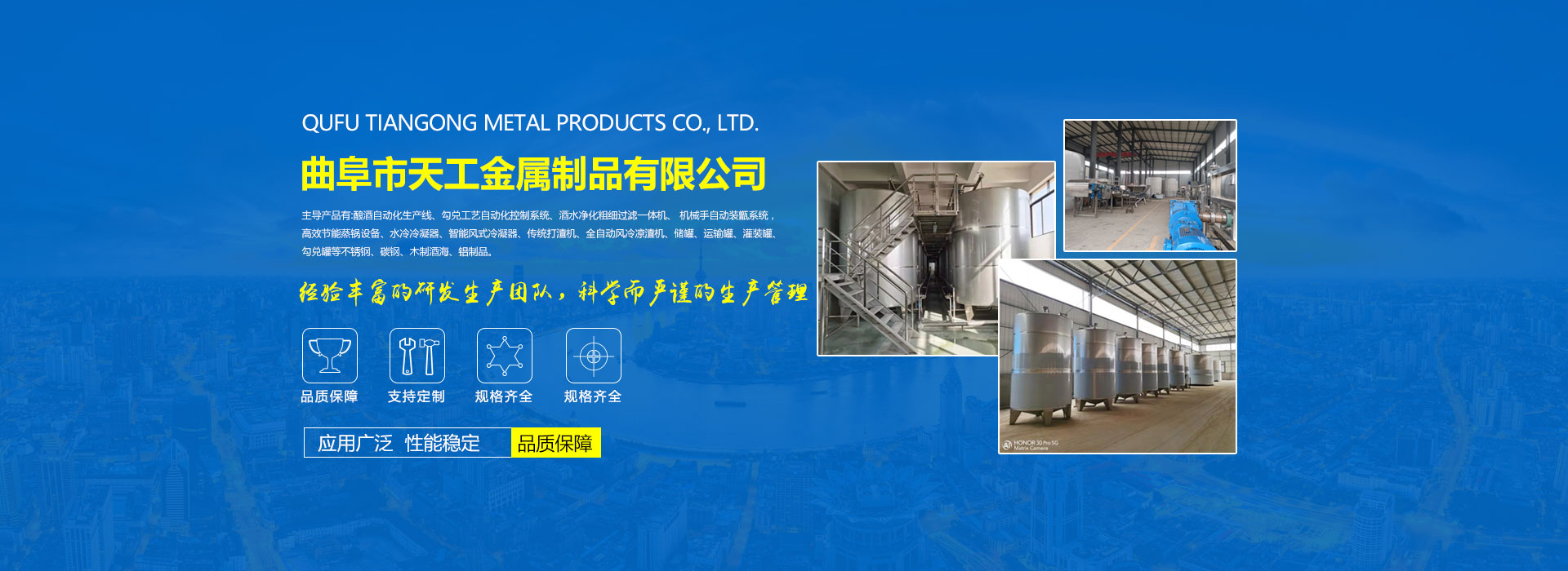 曲阜天工金屬制品有限公司專業生產、銷售不銹鋼酒罐不銹鋼發酵罐不銹鋼釀造設備等,并提供產品相關圖片、報價、參數等信息。